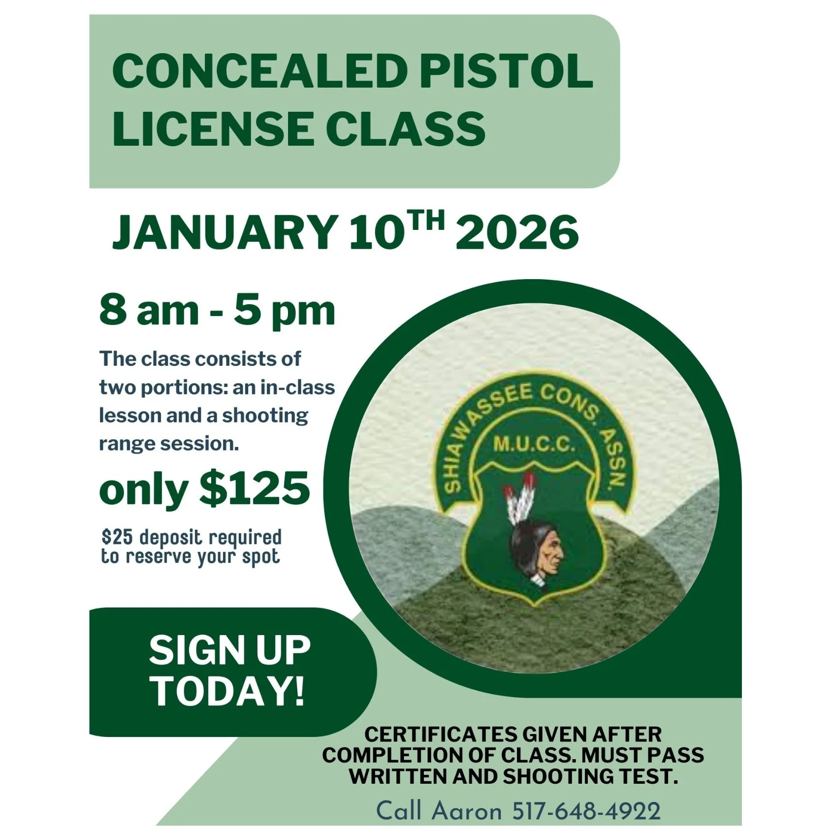 Interested in taking Hunter Safety? We have two 2026 dates for you to choose from: April 11th and August 8th from 8am-1:30pm. Contact Eric Davis to register or for more information 989-721-7590.