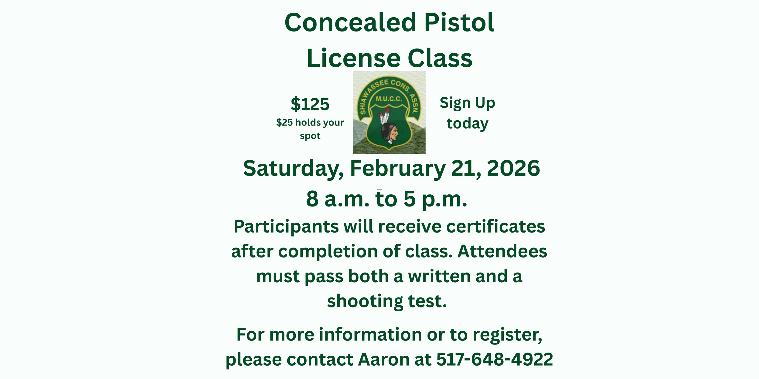 Interested in taking Hunter Safety? We have two 2026 dates for you to choose from: SATURDAY April 11th & SATURDAY August 8th 8am-1:30pm Contact Eric Davis to register or for more information 989-721-7590.